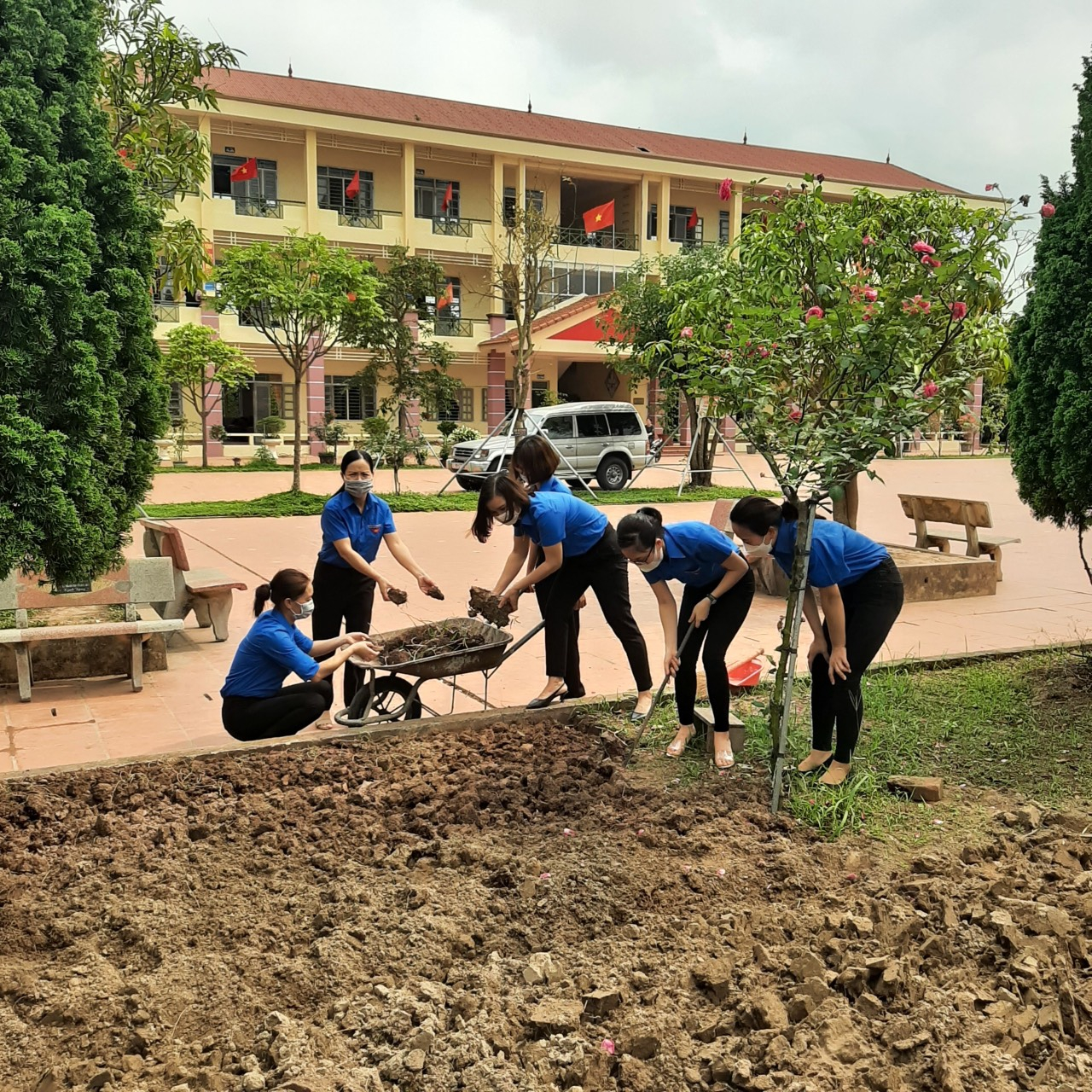 (Hình ảnh đoàn thanh niên chăm sóc cây)